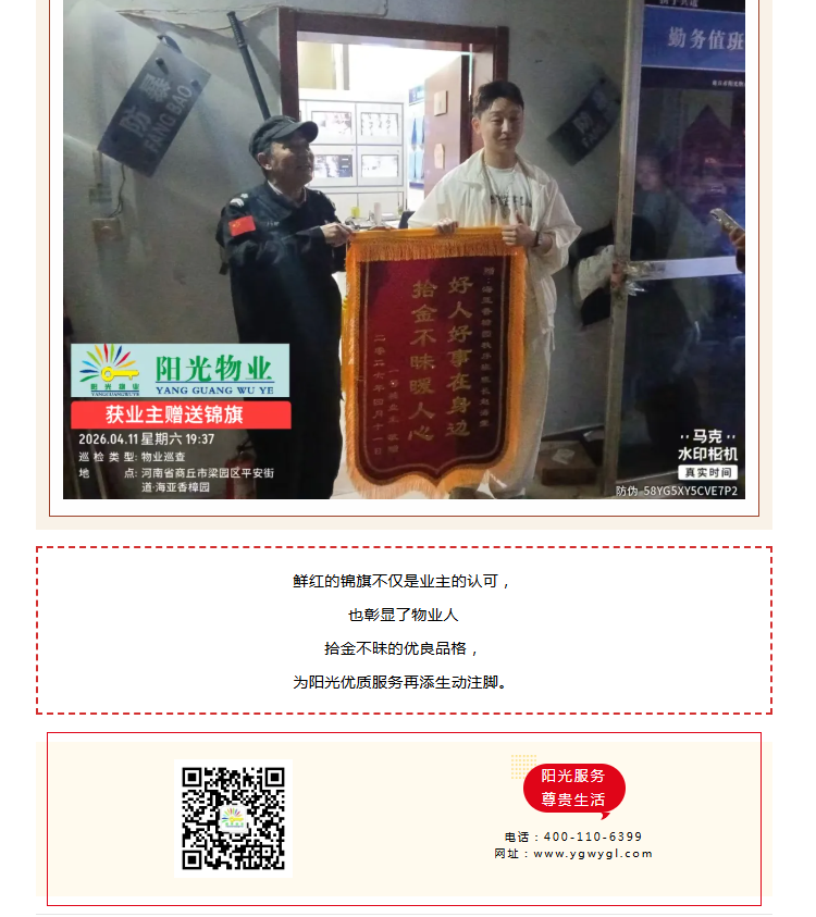 錦旗映初心 | 香樟園物業(yè)服務(wù)中心拾金不昧,守護業(yè)主“心頭寶”。